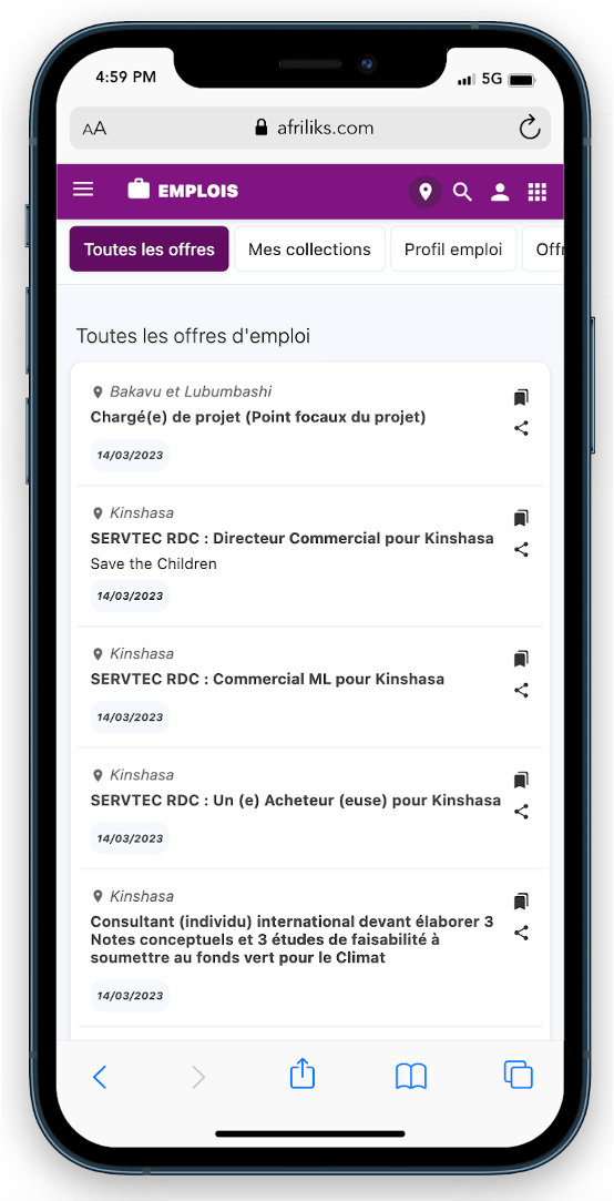 Afriliks jobs offre également des offres d'emploi, où les employeurs peuvent publier des offres d'emploi et les utilisateurs peuvent postuler directement via la plateforme.